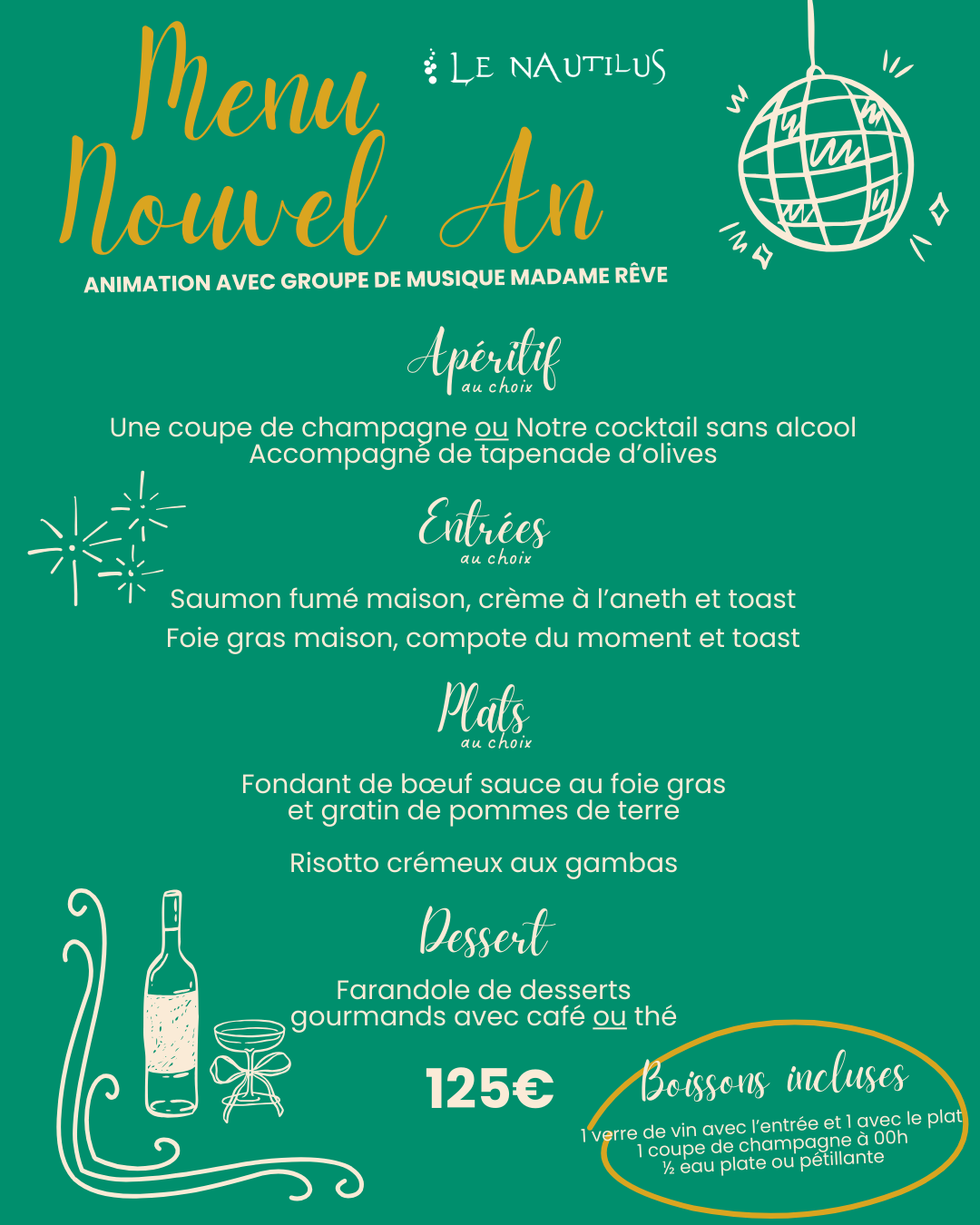 Le Nautilus vous accueille tous les jours de la semaine à partir de 12h.